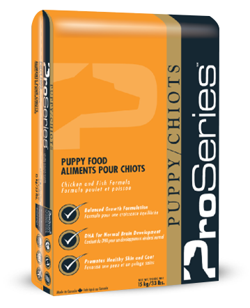 Alimento Pro Series para cachorros: Una fórmula que satisface las exigentes necesidades nutricionales de los cachorros activos y en crecimiento. También es adecuada para perras gestantes o lactantes.